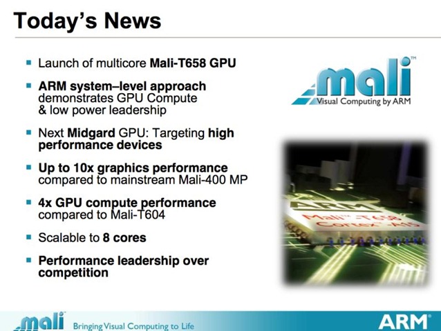 ARM เตรียมออกตัวประมวลผลกราฟฟิค Mali-T658 เร็วกว่า Mail-T400 ใน Samsug Galaxy S II 10 เท่า