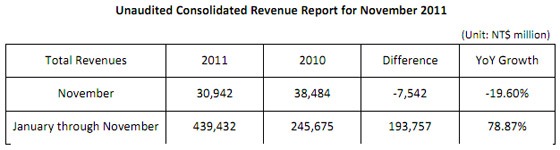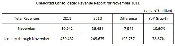 ทีนี้ผลกระทบมันเริ่มชัดเจนหลังจากที่ยอดขายของเดือนพฤศจิกายนที่ผ่านมา ตกต่ำกว่าปีก่อนหน้าพอสมควรเหลือ 30,942 ล้านดอลลาร์ไต้หวัน ลดลง 19.6% จากปีก่อนหน้าที่มียอดขายราว 38,484 ล้านดอลลาร์ไต้หวันด้วยกัน