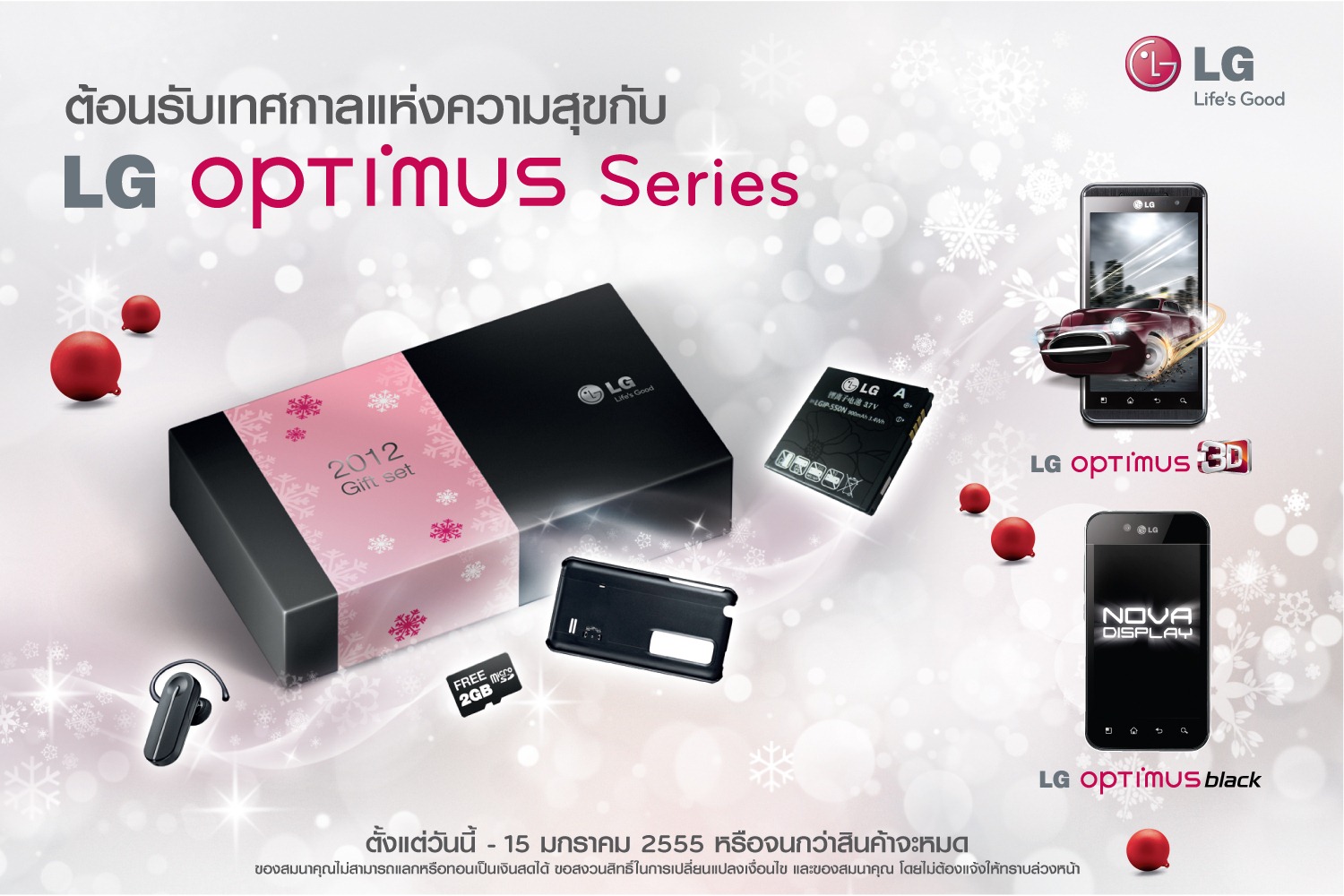 ร่วมฉลองเทศกาลแห่งความสุขด้วยของขวัญสุดพิเศษจาก LG Optimus ทั้ง 2 รุ่นได้ตั้งแต่วันนี้ – 15 มกราคม 2555 (หรือจนกว่าสินค้าจะหมด) ข้อมูลเพิ่มเติมเข้าชมได้ที่ www.lg.com/th หรือติดต่อศูนย์บริการแอลจี โทร 02-878-5757