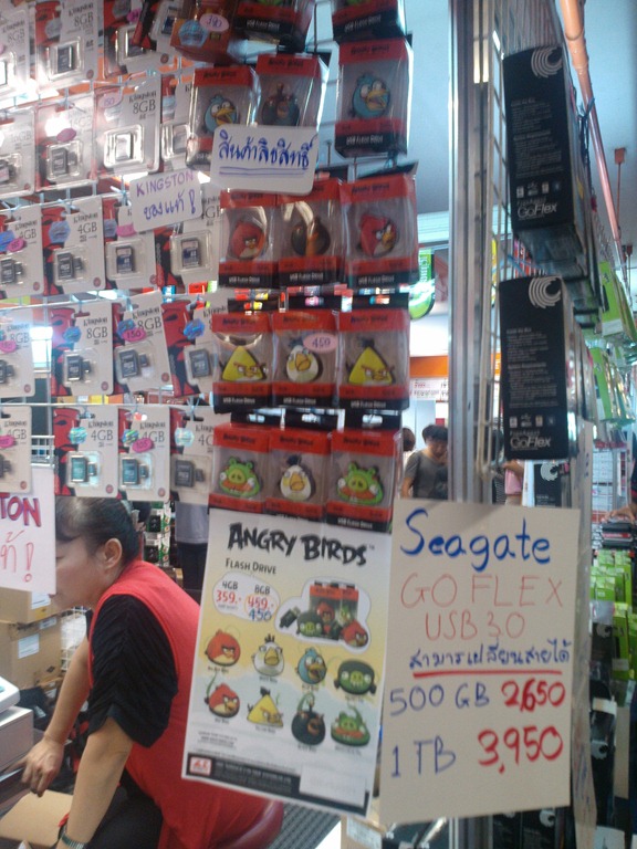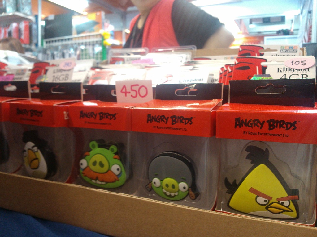 พิกัดเเรกนั้นอยู่ที่โซน C ชั้นล่าง (ติดกับฟูดคอร์ท) เดินไปท้ายๆ จะเห็นร้านที่ขาย Flash Drive ลาย Angry Birds มีลายให้เลือก 8 ลาย สองความจุ 4 GB กับ 8GB ราคา 259 เเละ 450 บาทตามลำดับ ♥ วัสดุจะเป็นเเบบยางนะ สีสด สมจริงไม่ดูเป็นของก็อป