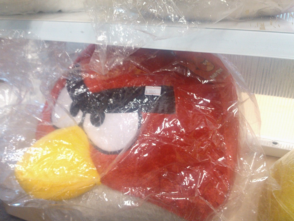 ชิ้นเเรก น่าจะเรียกว่าเป็นหมอนหนุนได้ (ละมั้ง) ราคา 395 หัวเป็น Angry Birds ด้านล่างเป็นขนนิ้มๆ สีตามนกหรือหมูบนหัว